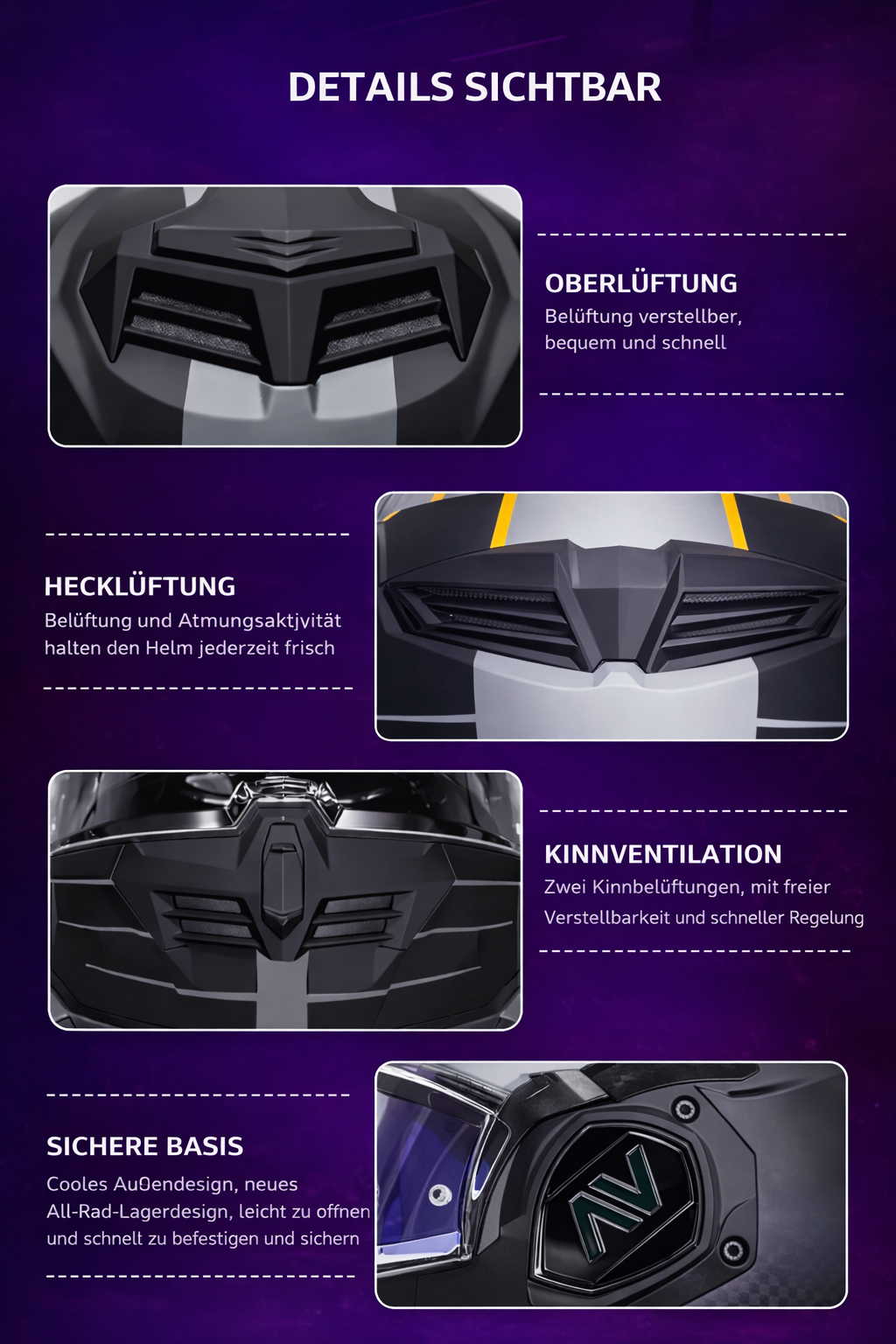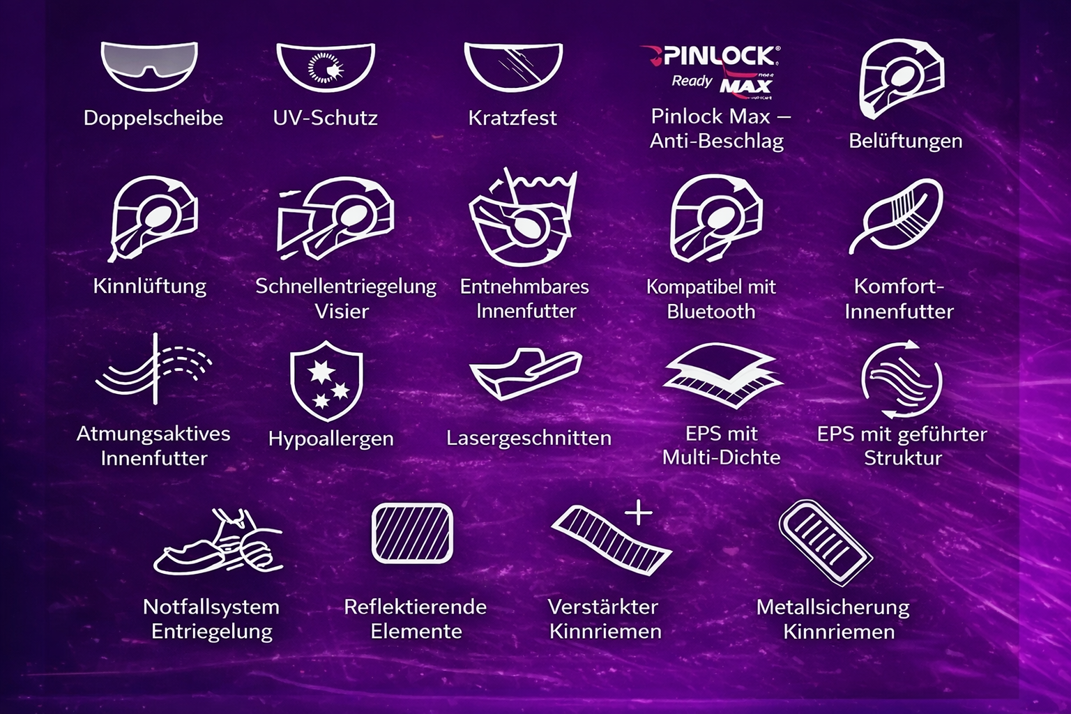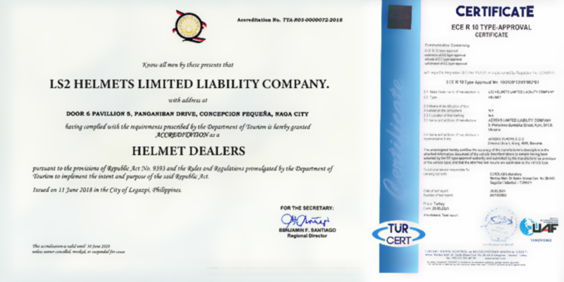 Unsere Helme sind offiziell nach den Normen ECE R22.05, EN1077, EN1078, EN1384 und US DOT FMVSS218 zertifiziert.